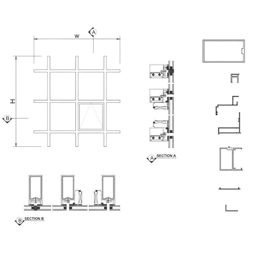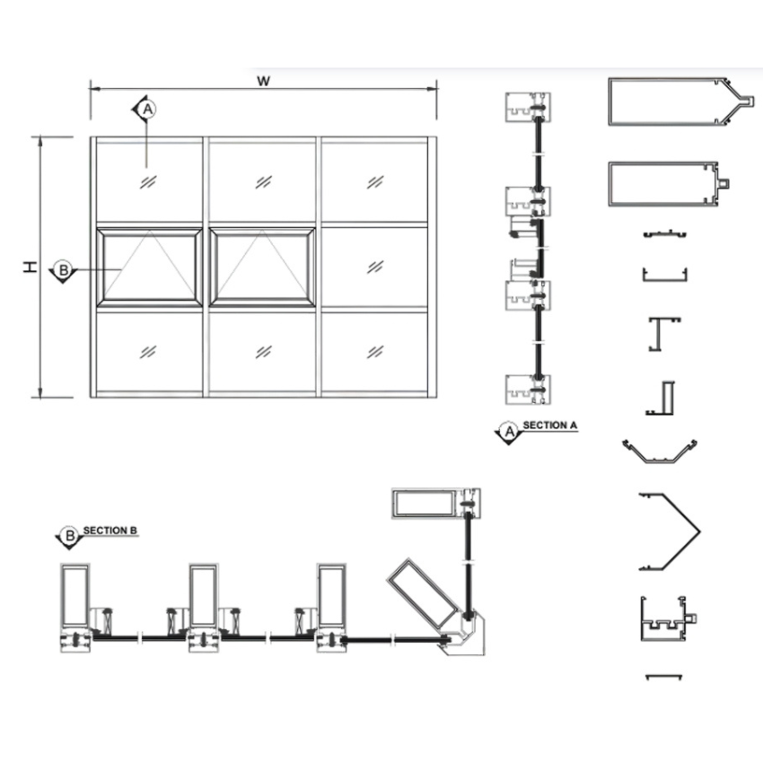Our unitized curtain wall boasts a sleek, elegant design with a slender and transparent aesthetic. It integrates cutting-edge technology, outstanding performance, reliable quality, and energy-efficient, eco-friendly solutions. A curtain wall is an independent structural system that consists of aluminum profiles, glass, installation accessories, and other components. Our curtain wall profiles are in-house, custom-made, with various dimensions, cross-sectional shapes, etc. In addition, we provide on-site installation services to domestic and international customers.